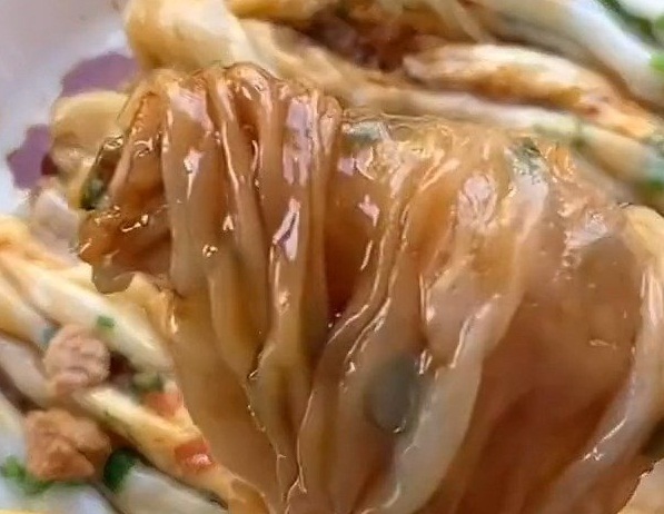蒸熟起屜后,你會看到薄薄的一層粿皮好似蟬翼般晶瑩剔透,里面包裹著的豐富餡料都清晰可見。汕頭腸粉的醬汁,還會在傳統醬料配方的基礎上加入芫荽、蝦米和香辛料如八角、香葉等一起熬煮,既咸又鮮,既有香料氣息撲鼻,余味中又帶有一絲絲甜,讓人回味無窮,淋上醬汁的剎那仿佛整條腸粉之魂都得到了加持。